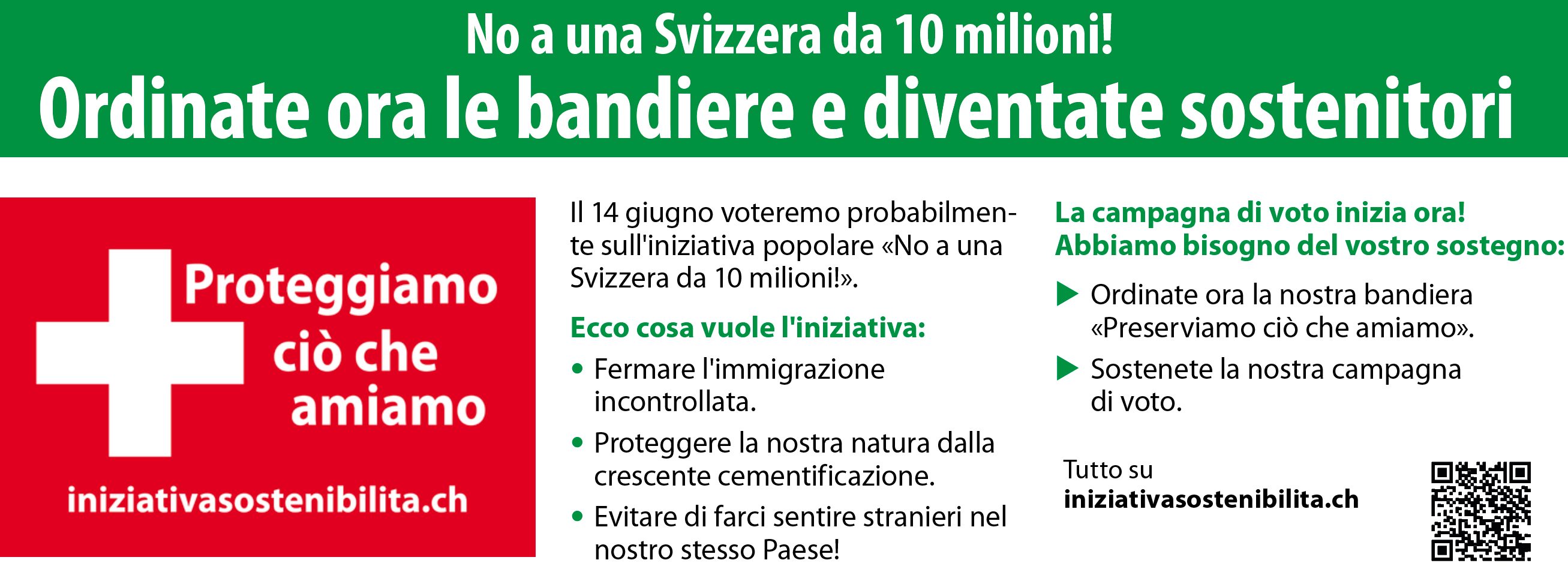 Chi vuole un’immigrazione ragionevole vota a favore dell’iniziativa per la sostenibilità «No a una Svizzera da 10 milioni!».