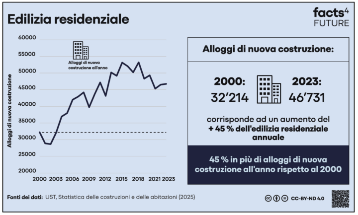 Nel 2001 sono stati costruiti 28’873 nuovi alloggi. Nel 2023 ne sono stati edificati 46’731. Gli immigrati costruiscono per altri immigrati, che a loro volta fanno venire in Svizzera le loro famiglie. Possono arrivare perfino i suoceri! Non riusciamo più a stare al passo con la costruzione.